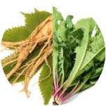 Hoja de Ginseng y diente de león que reducen la presión sanguínea, ayudan a reducir el estrés, añaden antioxidantes y contribuir a la pérdida de peso.