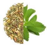 Hierba limón y hoja de stevia que mejoran la digestión y la salud intestinal y añaden un suave sabor a limón.