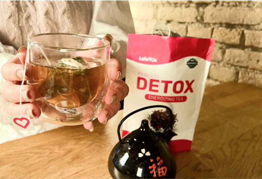 Meine Freundin hatte offensichtlich mit Blähungen zu kämpfen und bestellte bei einer Marke namens Lulutox, weil der Tee Blähungen lindern soll. Sie sagte, dass sie eigentlich nicht vorhatte abzunehmen.